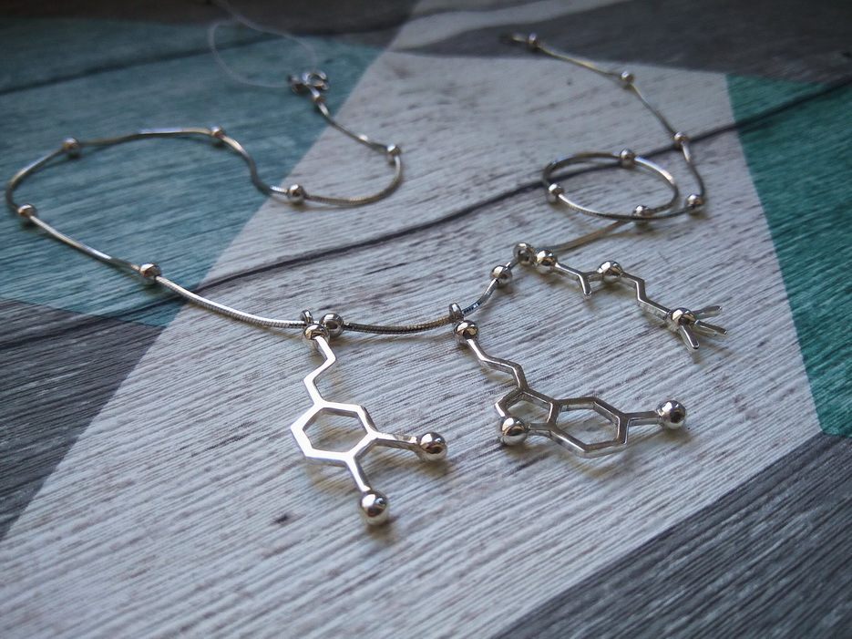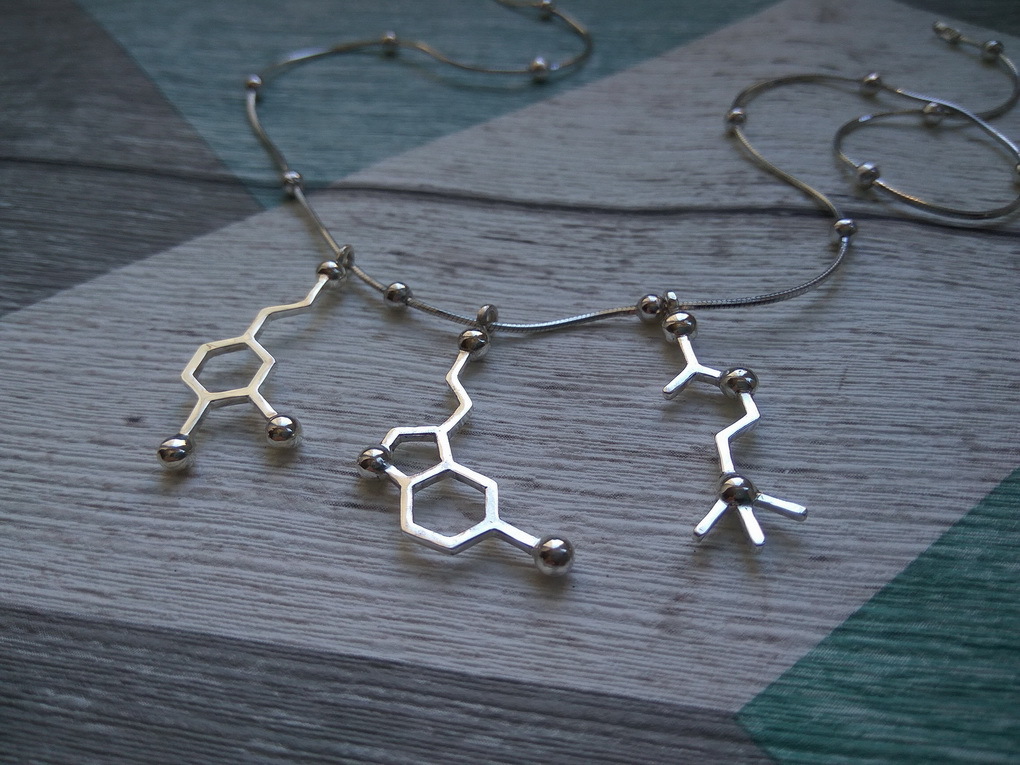 Нежное колье с тремя молекулами ручной работы: ацетилхолин, серотонин, дофамин.