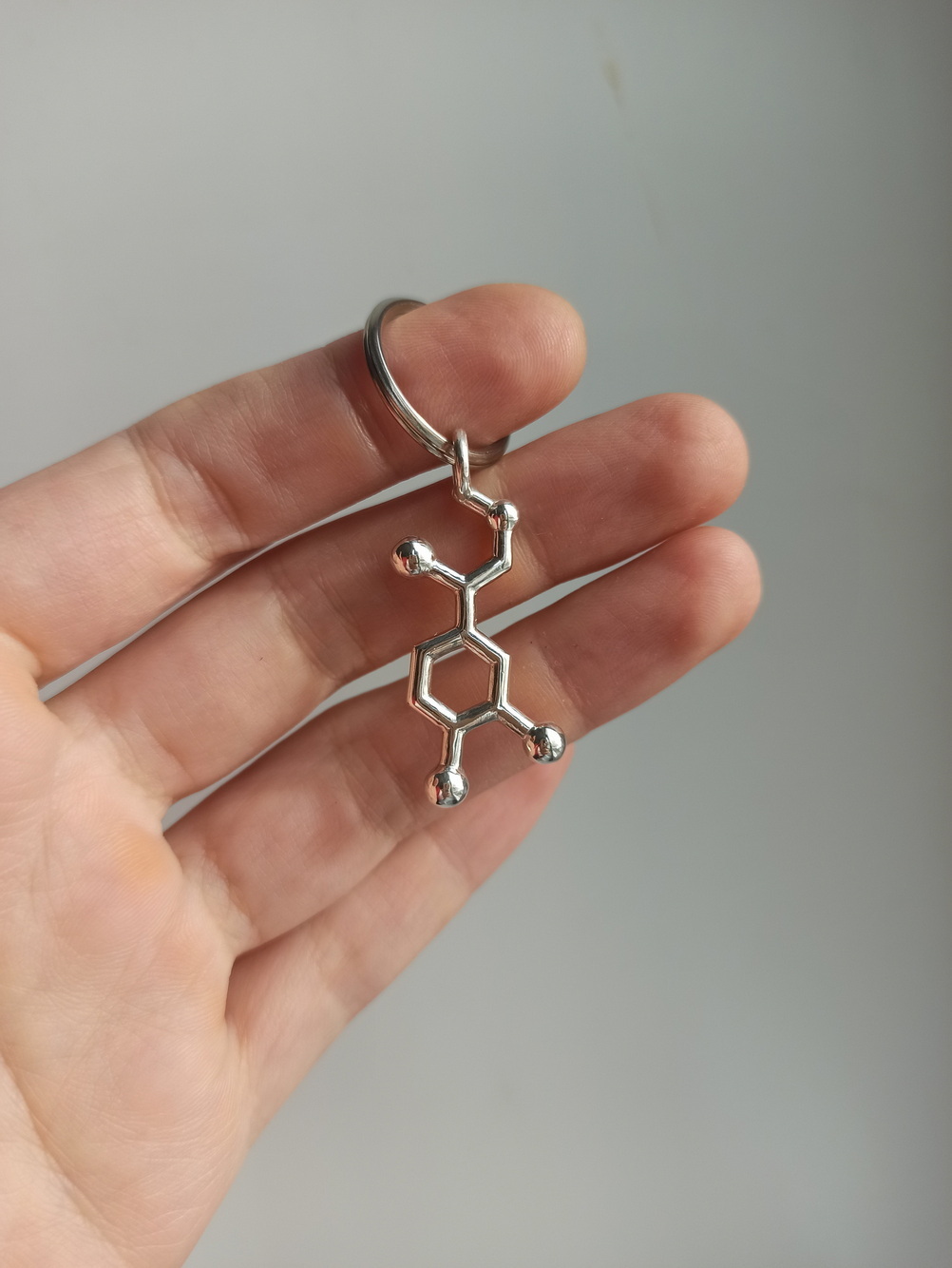 Этот кулон крупнее и тяжелее других молекул, не гнется и готов к испытаниям )) Если повесить на стальное колечко, можно использовать как брелок.