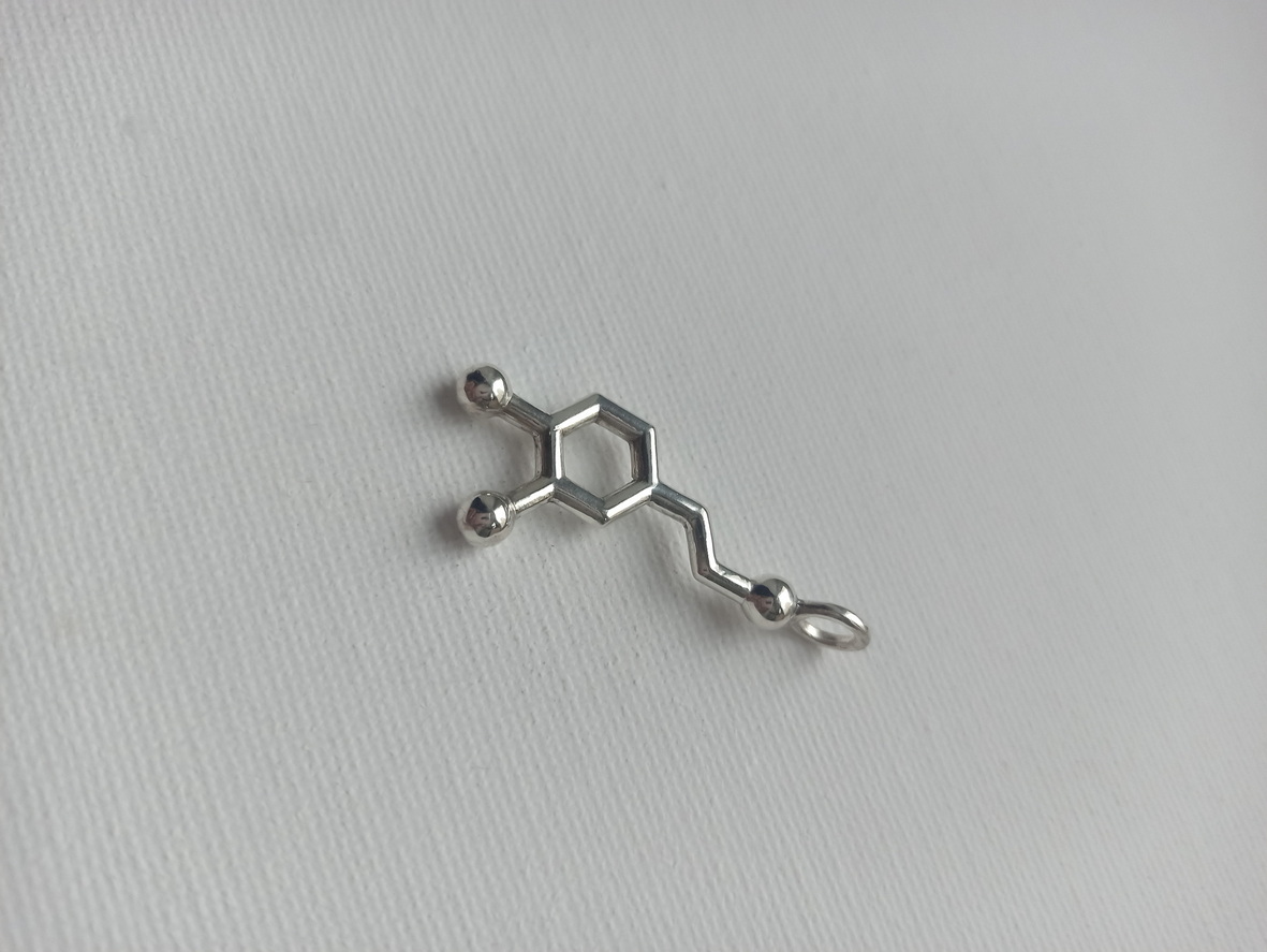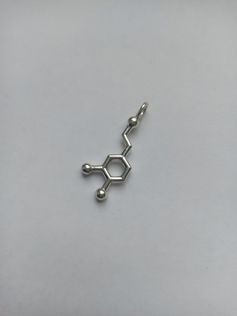 Дофамин выбрасывается в кровь когда мы страстно чего-то желаем. Поэтому эту молекулу можно дарить в знак любви или же целеустремленным людям.