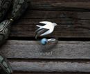 Кольцо с ласточкой и колибри. И натуральной бирюзой.