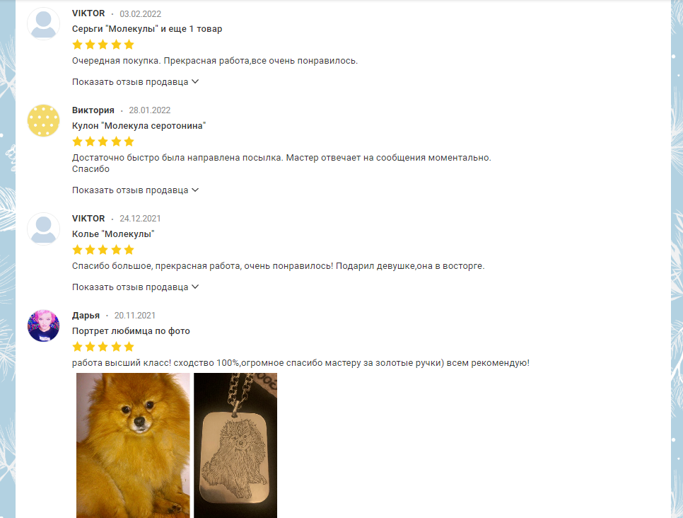 Сайт сделан мной лично, поэтому некоторые отзывы я скопировала с другого, где выставляю свои работы уже давно :))